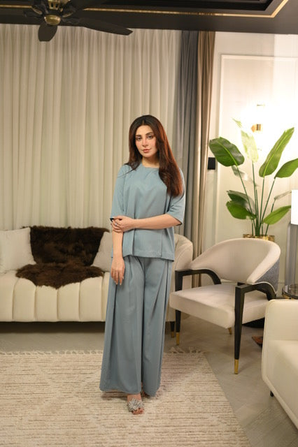 Lyra is a sleek, modern co-ord set in a refined shade of grey, designed for those who love effortless style with a contemporary edge. The set features stylish loose-fit bottoms paired with a chic short top, both crafted from a smooth polyblend fabric that drapes beautifully. This ensemble balances sophistication and comfort, making it a versatile choice for both casual and elevated occasions.