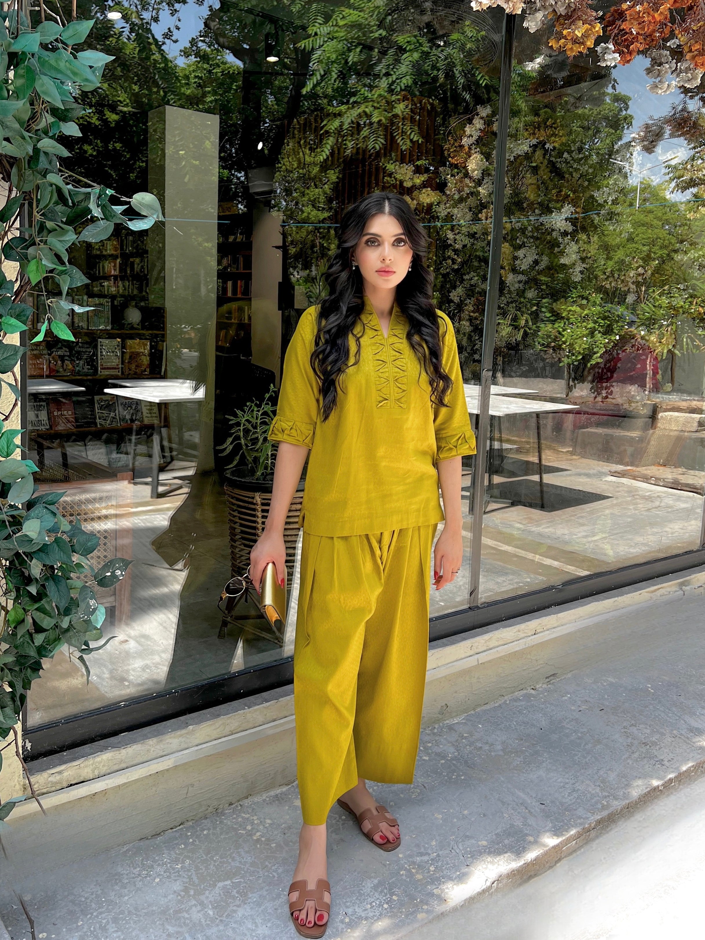 Paired with a modern-cut shalwar, "Sage" is versatile and perfect for both day and night wear, effortlessly blending comfort with contemporary style.