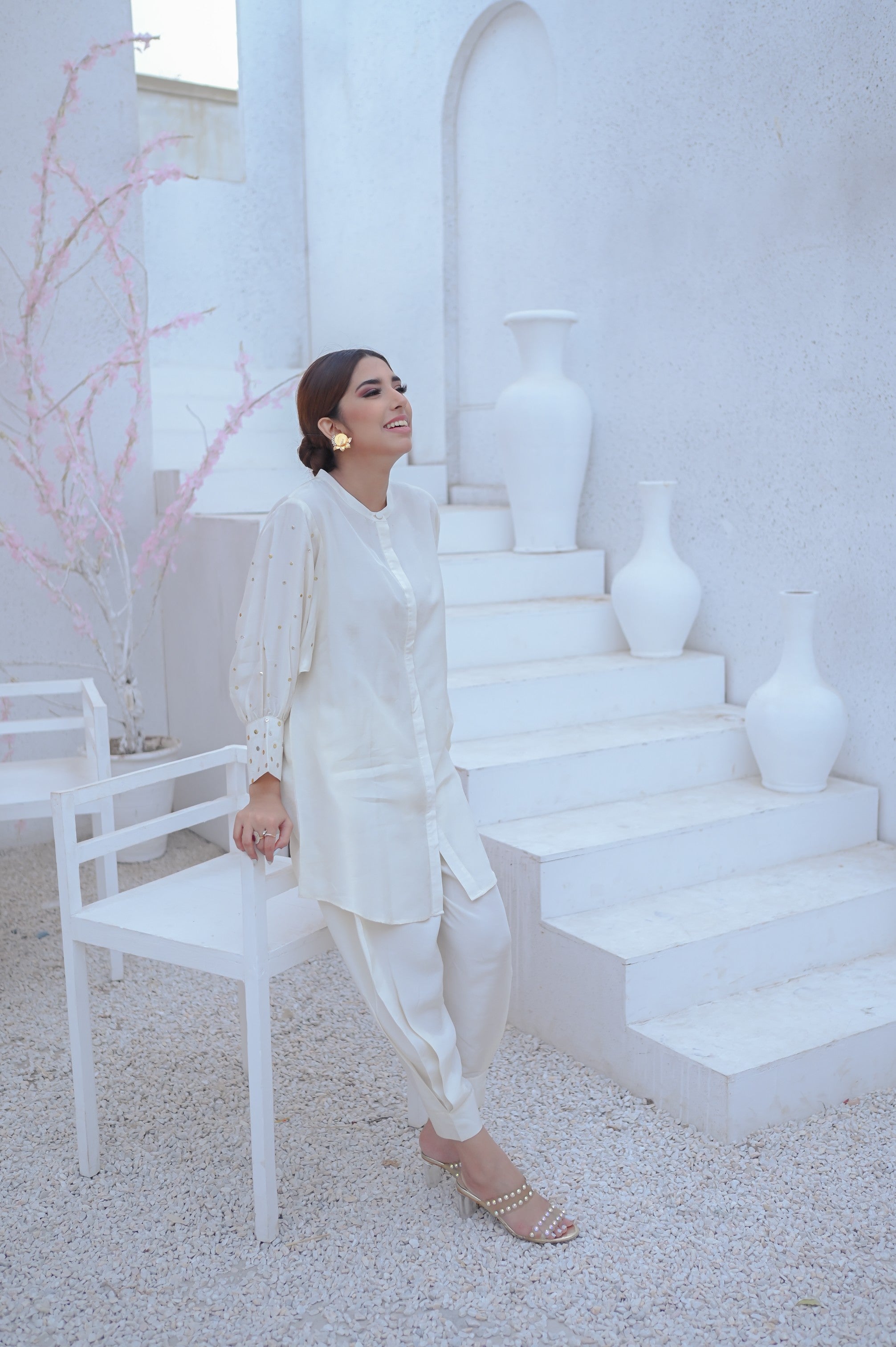 Bottom: The coordinating bottom piece crafted from the same Korean Raw Silk fabric completes the ensemble with a comfortable fit and sophisticated appeal.