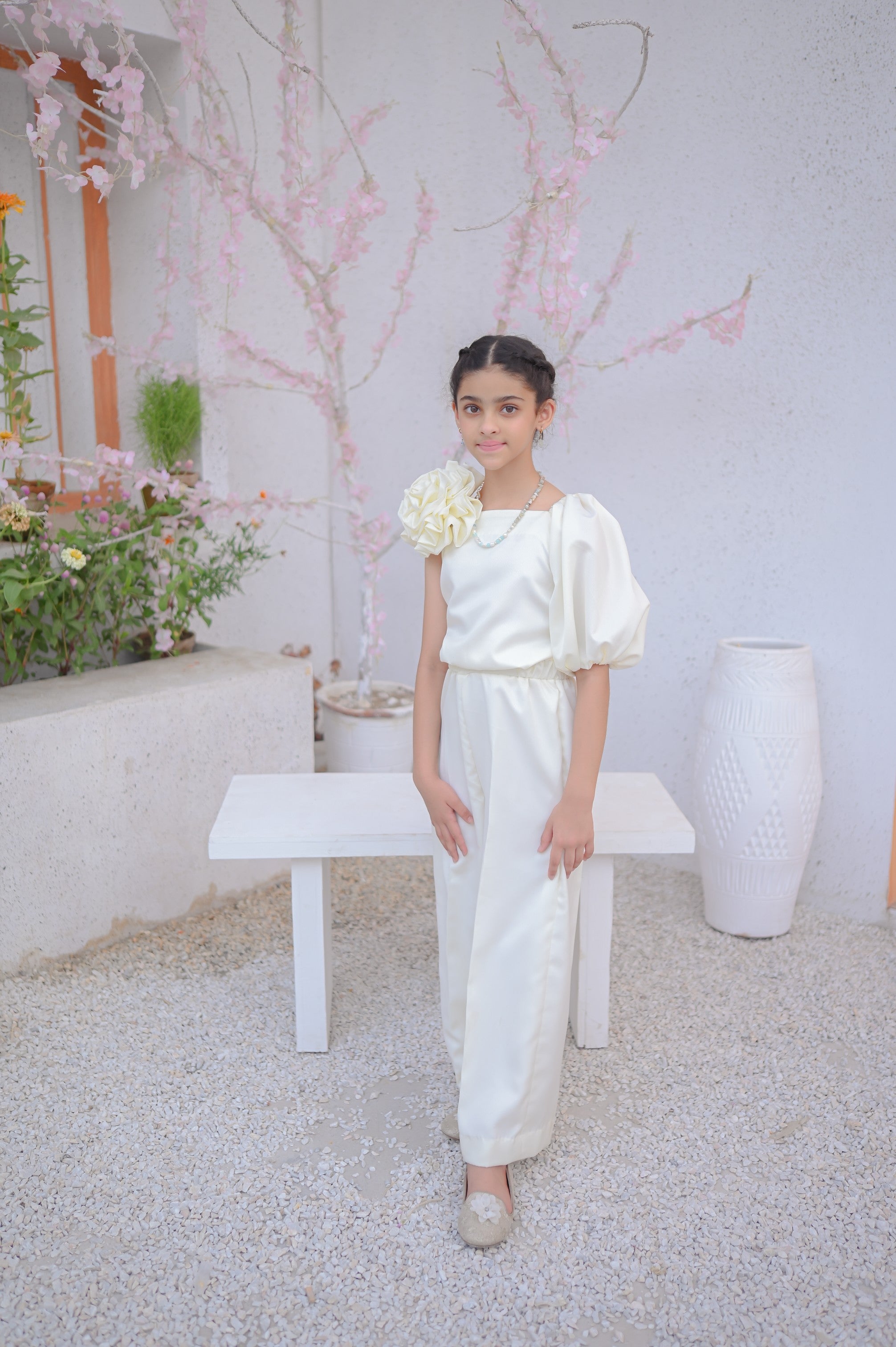 Introducing our newest addition to the kids collection, featuring a beautiful hand made flower. Made with high-quality fabric and designed for maximum comfort, this jumpsuit is perfect for any young fashionista. The flower adds a special touch to the outfit, allowing your child to stand out from the crowd.